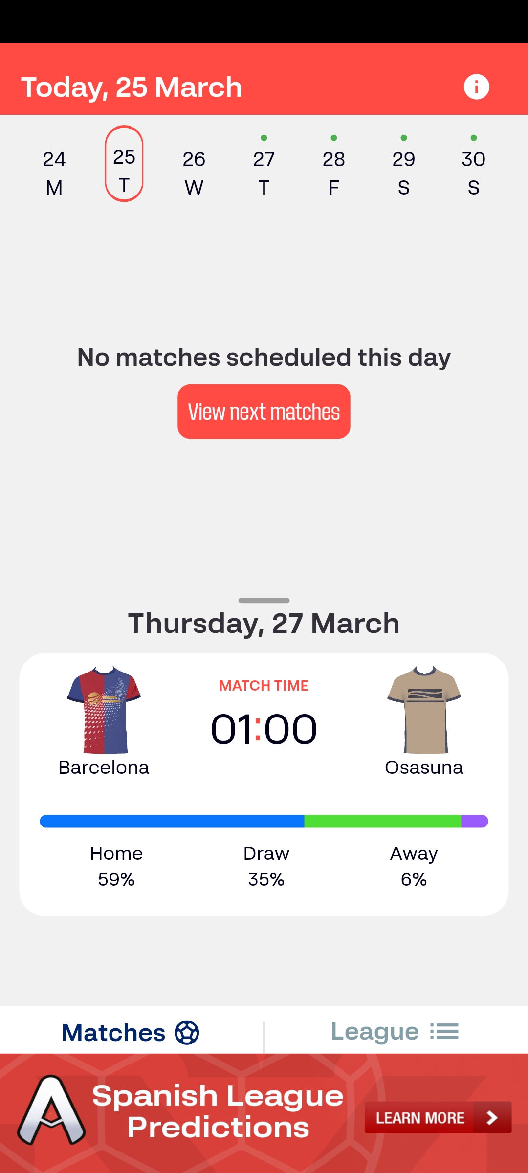 Tailored for those who love the game, our app provides data-driven insights to enhance your understanding of match dynamics and team performance. Make smarter decisions with reliable predictions tailored specifically for La Liga.